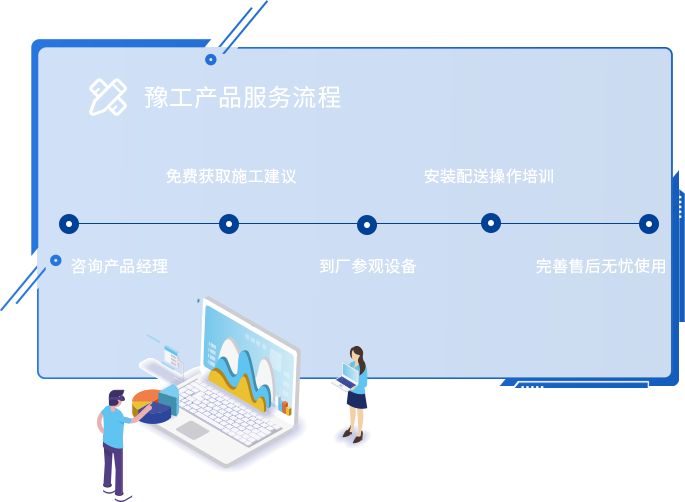 豫工機械為您提供從售前、售中到售后的全生命周期的無憂服務,將增值服務融入到與每一位客戶密切相關的任何一個環(huán)節(jié)。 豫工機械秉持'快速反應、暢快溝通、精準高效、合理周到"的服務宗旨。在接到客戶需求后,我們會在更短時間內(nèi)與客戶取得聯(lián)系,了解客戶 具體需求情況,幫助客戶分析問題、解決難題。